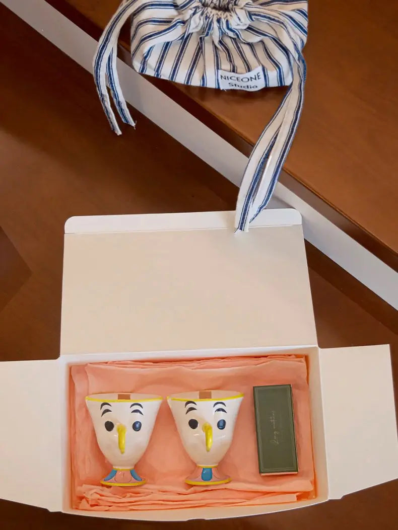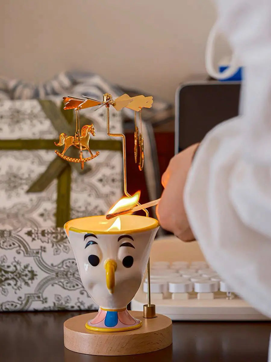 Featuring Chip Potts in Beauty And The Beast, these Disney cartoon inspired scented mug candles not only scent your room but also accent your space with playful glow. Made of luxurious soy wax, these cute candles fill your space with the freshness of a just-ripped pear wrapped in the white freesia and transport you to a orchard bathed in warm golden sunshine. Well packed in a gift box, this candle set is perfect for Disney fan and fragrance connoisseur as well