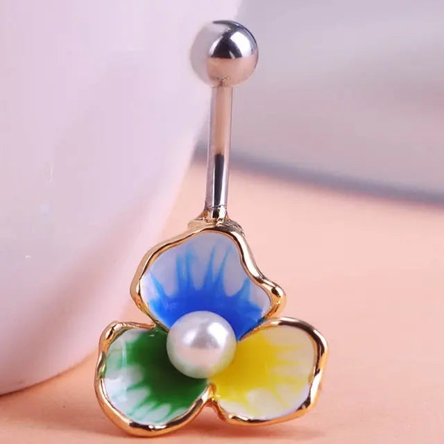 Enamel Pearl Beads Flowers Piercing Navel Belly Button Rings Body Piercing Violetta Gothic Accessorries