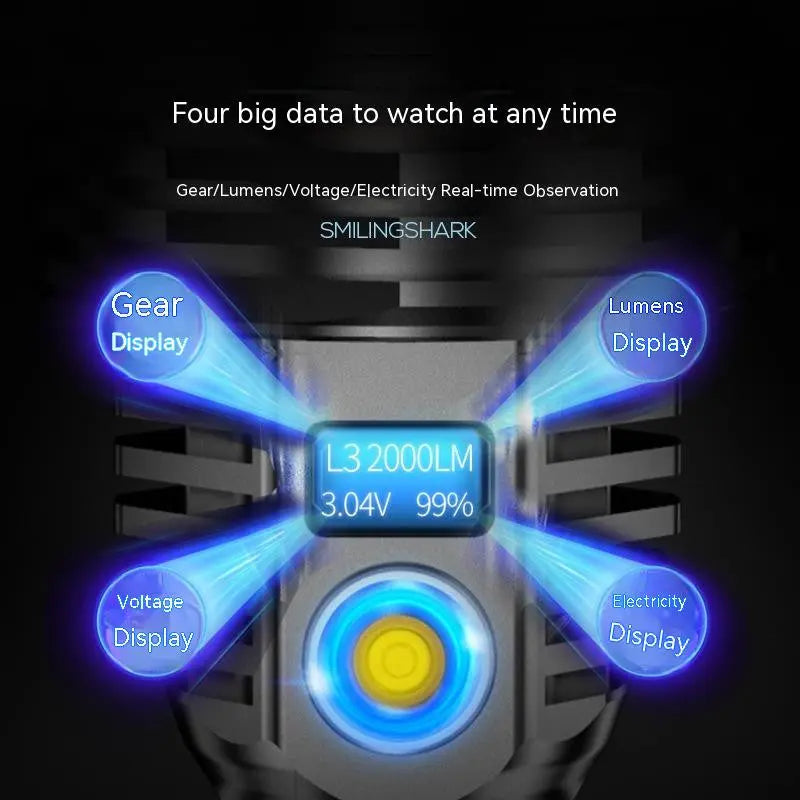 Battery Capacity: 5500mAh - Equipped with a high-capacity rechargeable battery, this flashlight provides long-lasting illumination. The 5500mAh capacity ensures extended use between charges.
