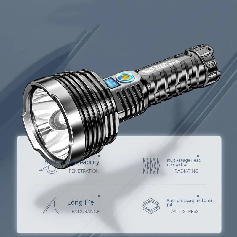 Introducing the Long Shot Camping Cave Search Waterproof Strong Light Rechargeable Flashlight - your reliable companion for outdoor adventures, camping trips, cave exploration, and emergency situations. Here's all the essential product information you need: