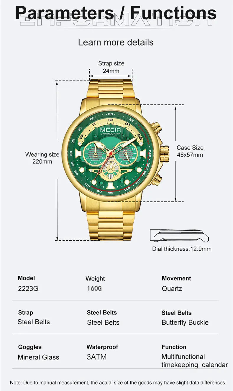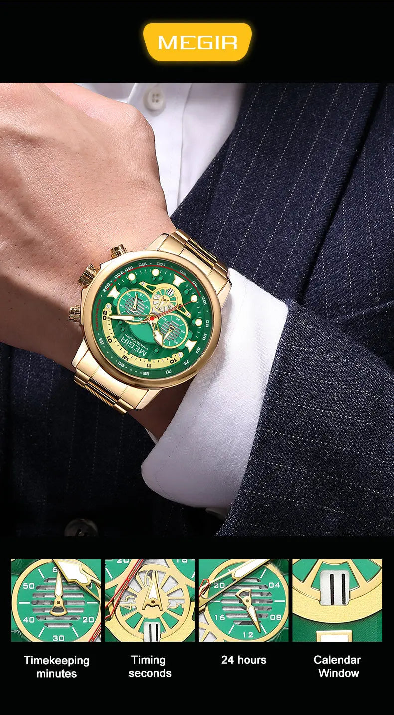 MEGIR Luxury Watches Stainless Steel Quartz Wristwatches Fashion
