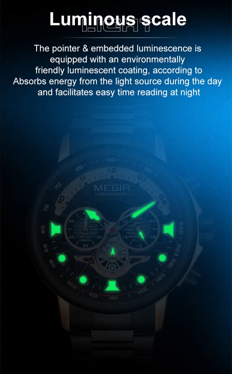MEGIR Luxury Men Watches Stainless Steel Quartz Wristwatches Fashion Men Business Watch Clock Male Chronograph Relogio Masculino
