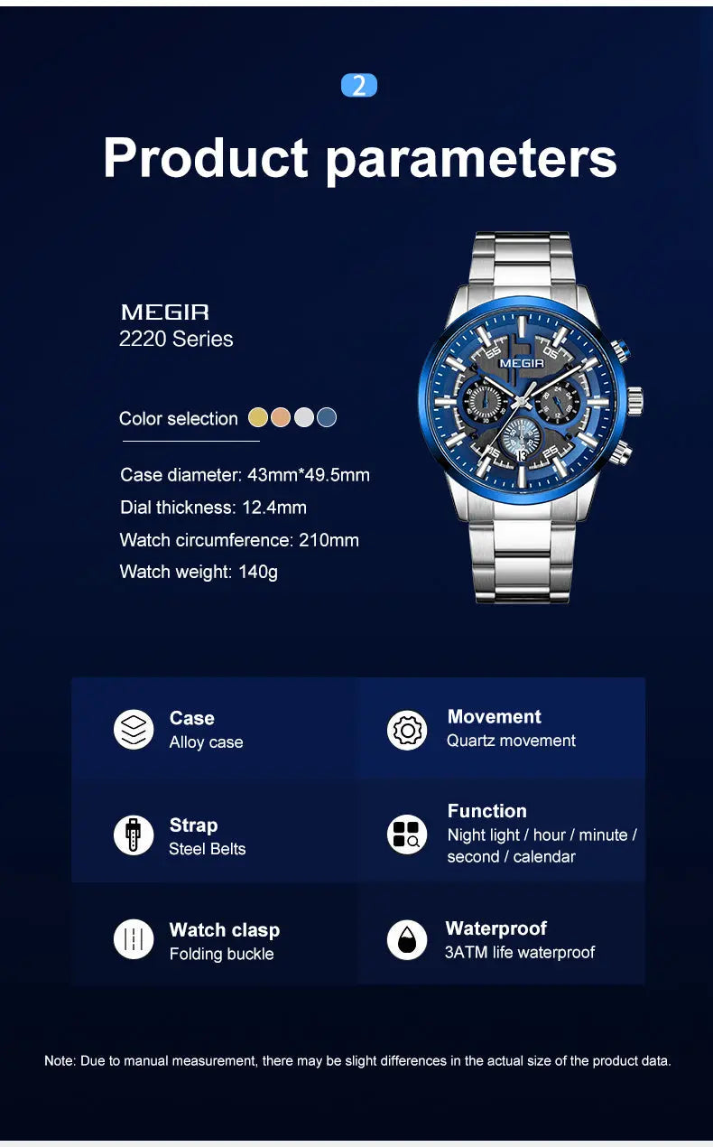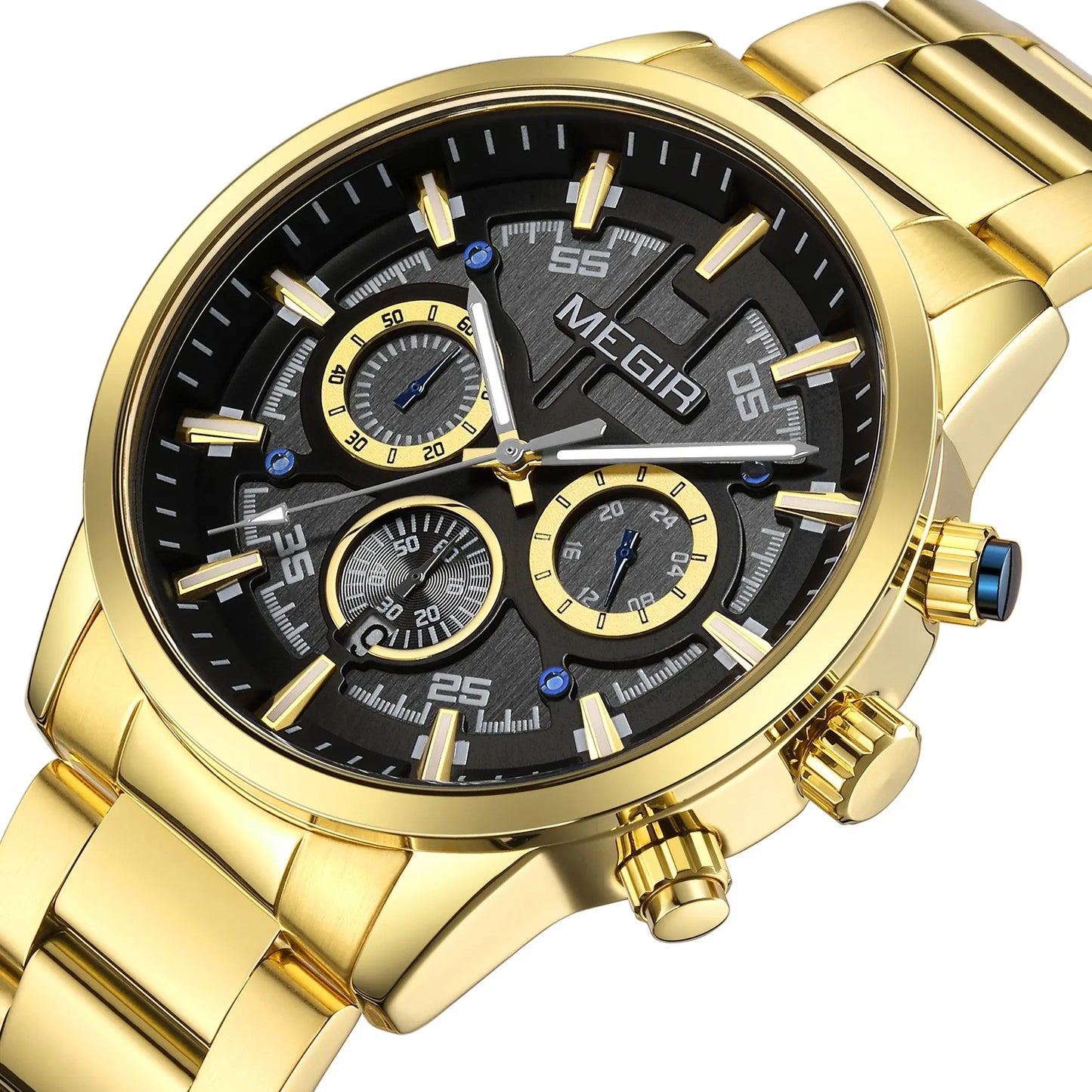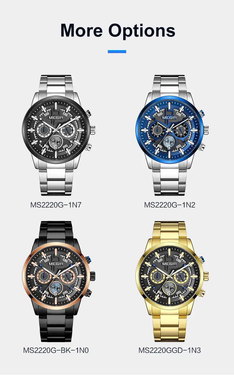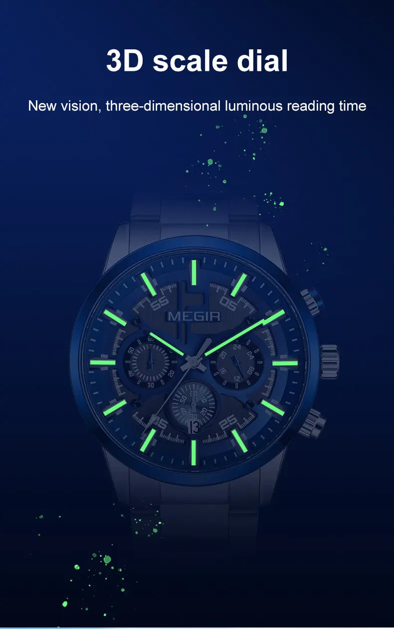 MEGIR Luxury Watch Mens Business Watches Calendar Stainless Steel