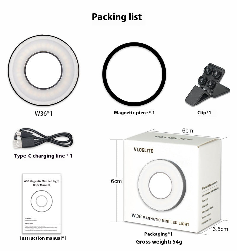 This mini fill light is the perfect accessory for your mobile phone. It comes in a compact size of 5.7 * 1CM, making it easy to carry around. The single lamp packaging makes it convenient to use and the built-in battery ensures you can use it anytime, anywhere. With multi-gear adjustment and three-color temperature options, you can adjust the light according to your needs. This fill-in light is perfect for live broadcasts and makeup application, providing you with the perfect lighting. The package includes 1 fill-in light.