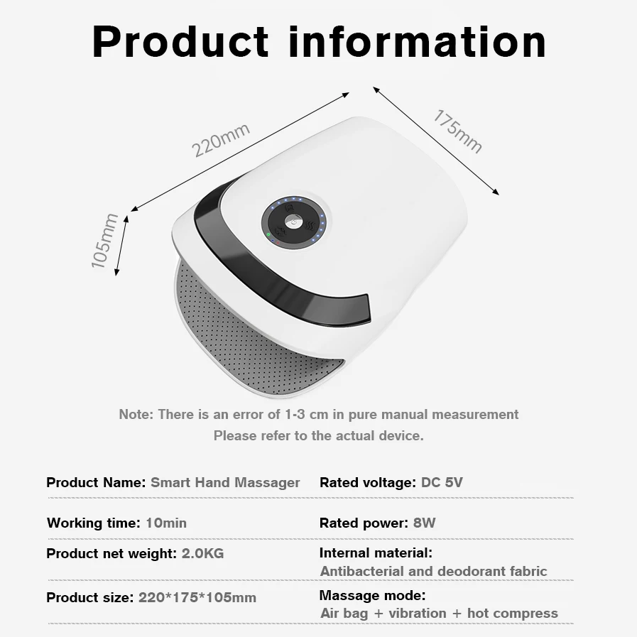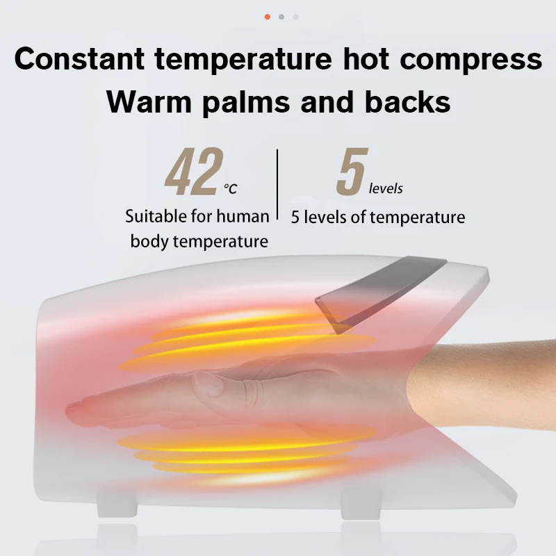 The Hand Massager uses advanced air compression technology to provide gentle yet effective massage to your hands. This comfortable device not only kneads your palm and fingers but also features soothing heating options. So, whether you've had a long day at work or just need to unwind, the heating element enhances the massage experience by promoting relaxation and improving circulation, perfect for relieving muscle tension.