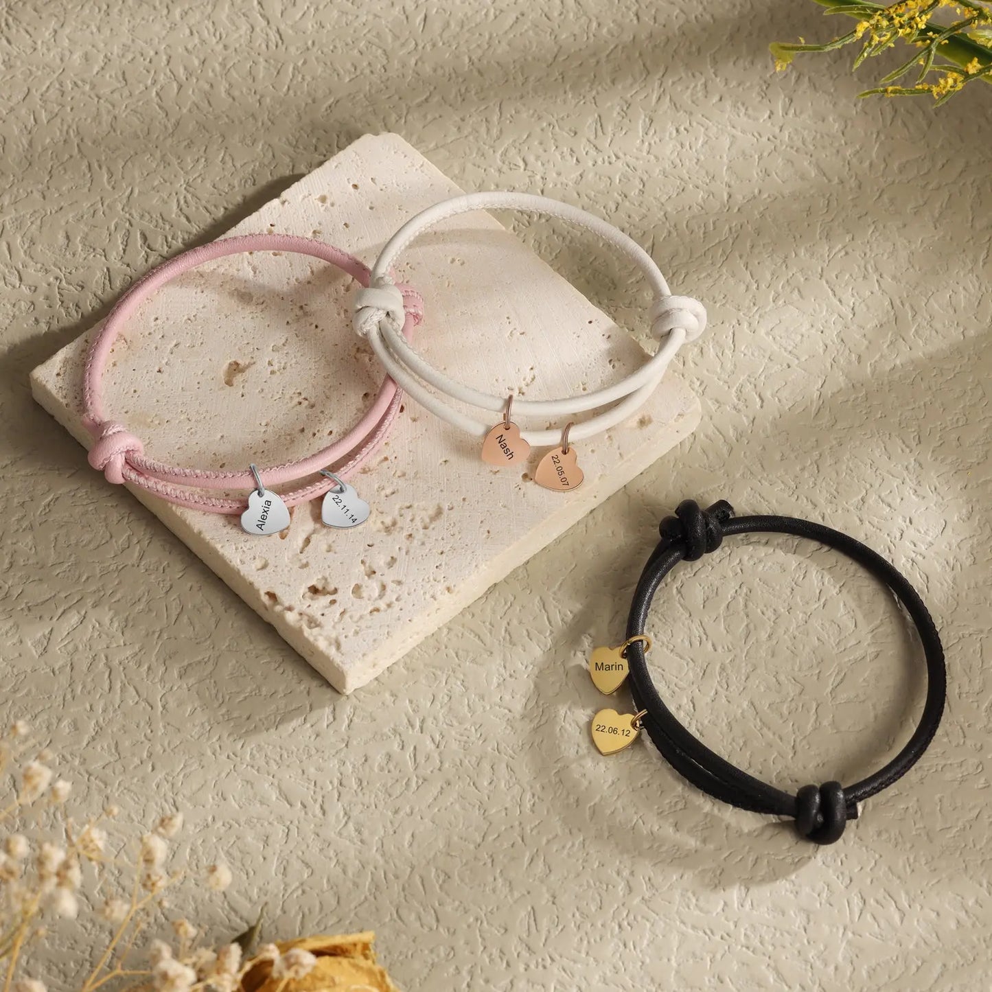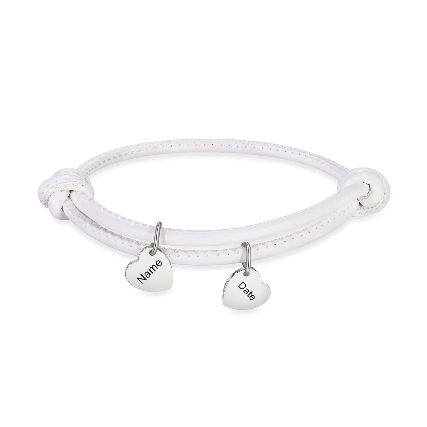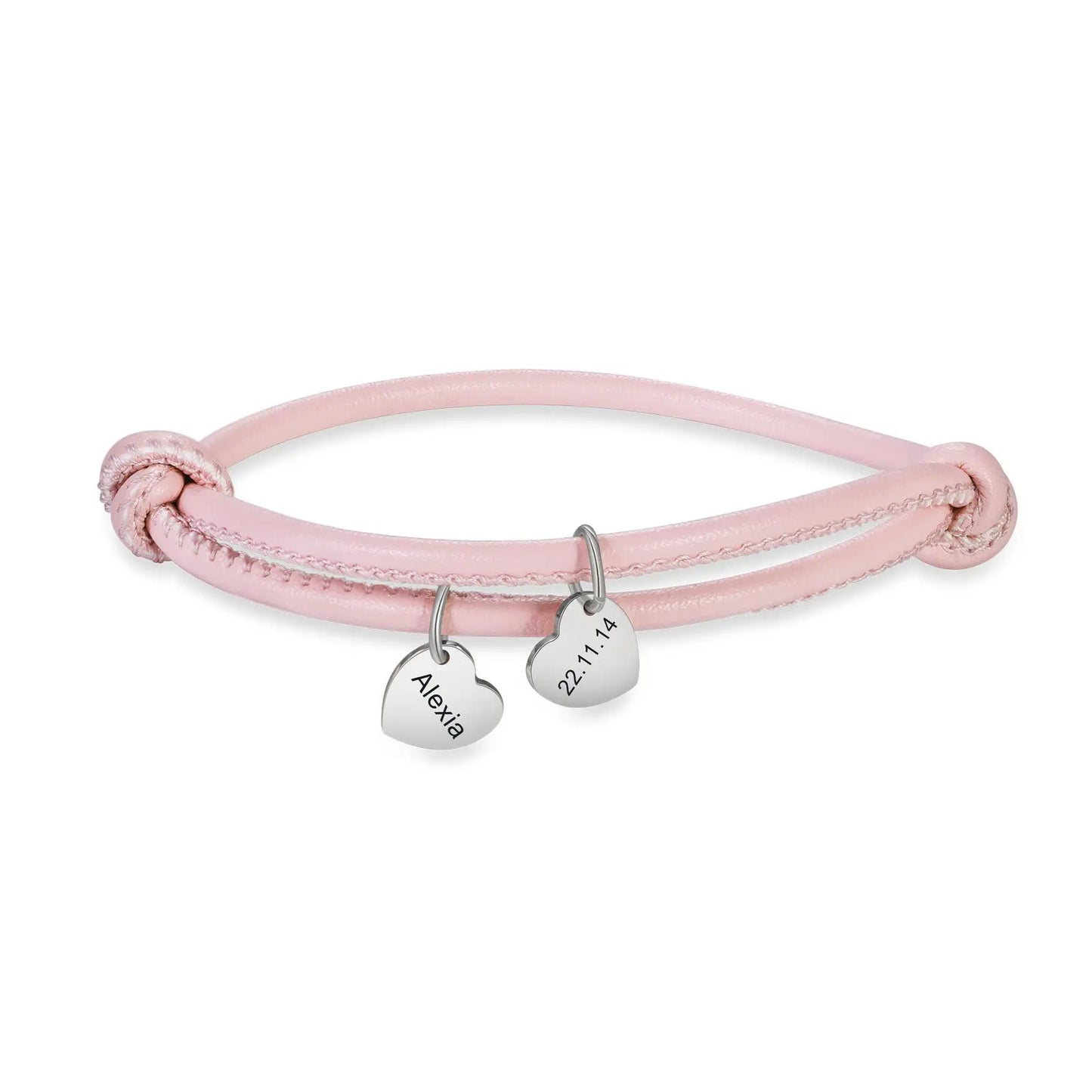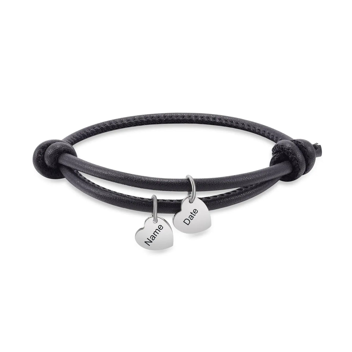 Each elegant leather bracelet features two charming heart charms, ready to be engraved with her name and a significant date, such as the day she was born, her graduation date, or the date of a cherished memory. It’s a personalised piece that serves as a beautiful reminder of your love.