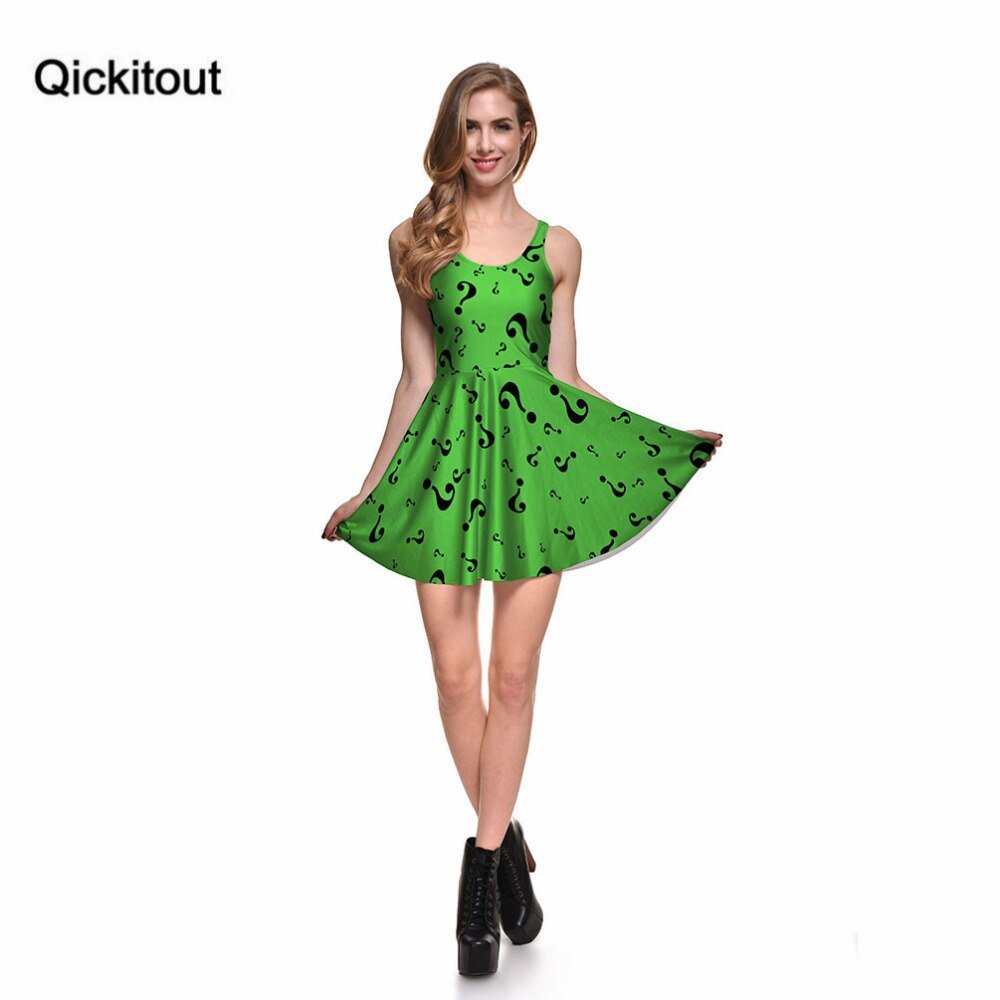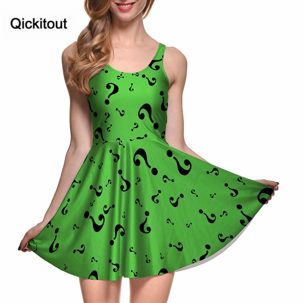 Fashion Women Digital Printing THE RIDDLER REVERSIBLE SKATER DRESS