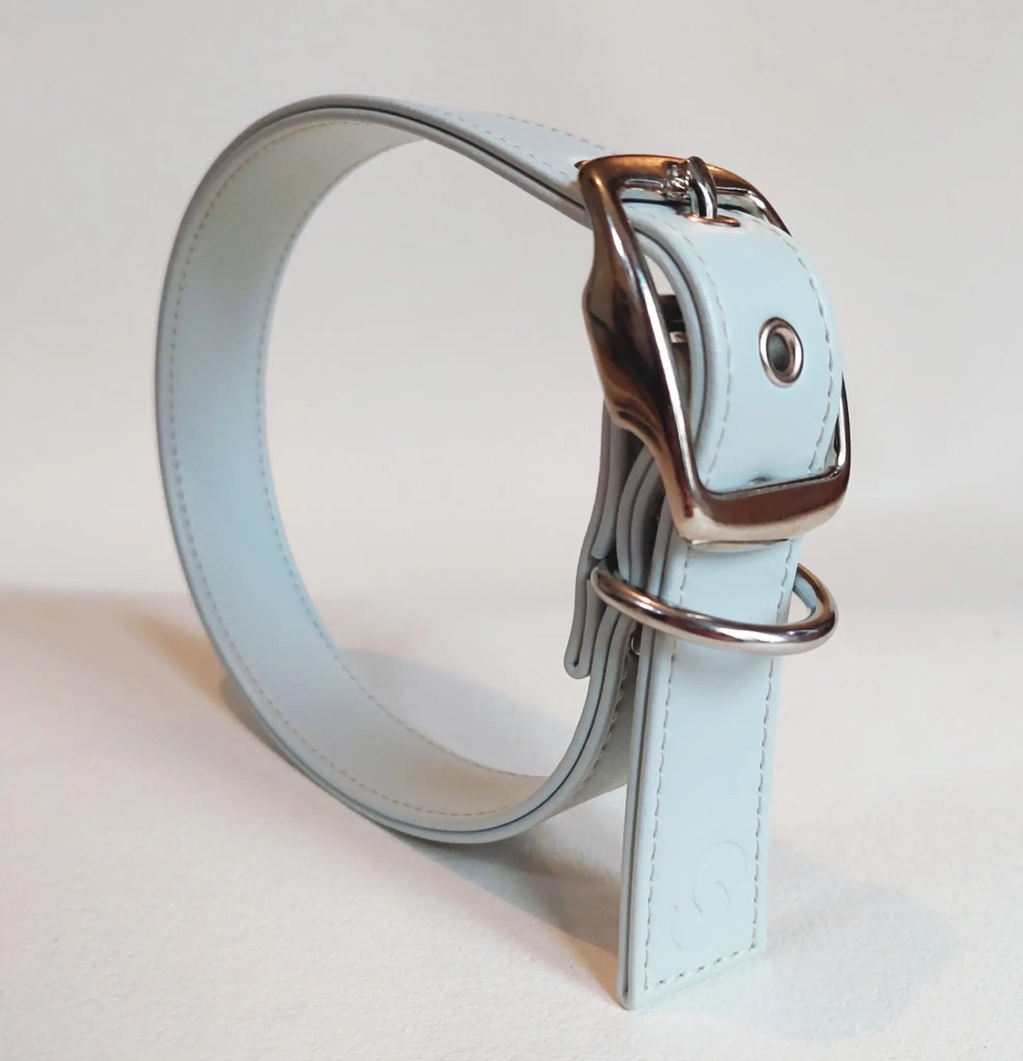 Available in small, medium, large, and extra-large, the colour range includes ice blue, blush pink, forest green, silver and classic black. Each collar is double backed and stitched for strength, the buckle is sturdy, and the collar has four eyelets to ensure proper fit on your dog (five on extra-large collar). The small and slim medium collars measure 19mm in width, whilst the medium, large and extra-large collars are 25mm wide.