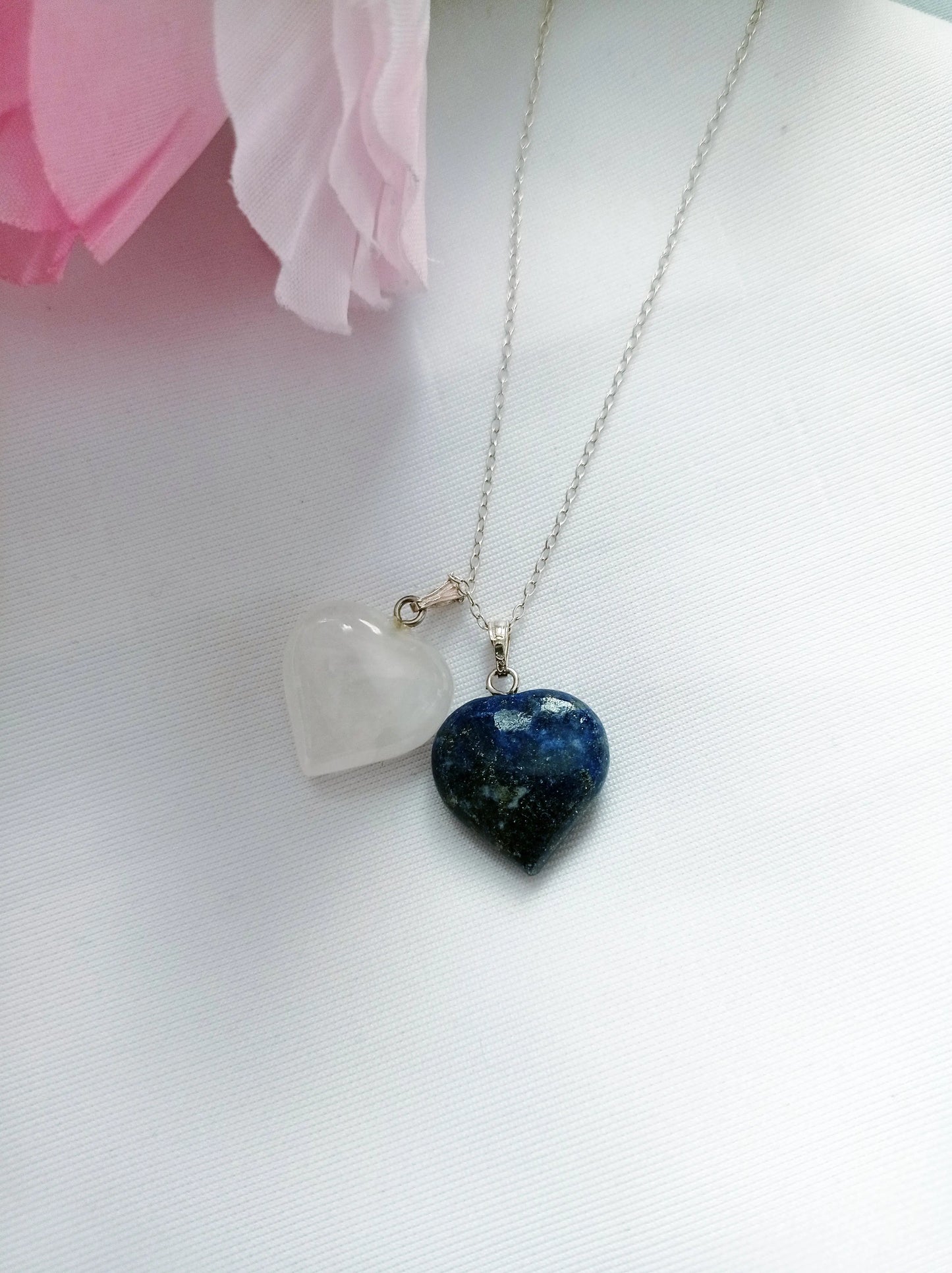Lapis Lazuli and Rose Quartz Hearts Necklace - Memoriex