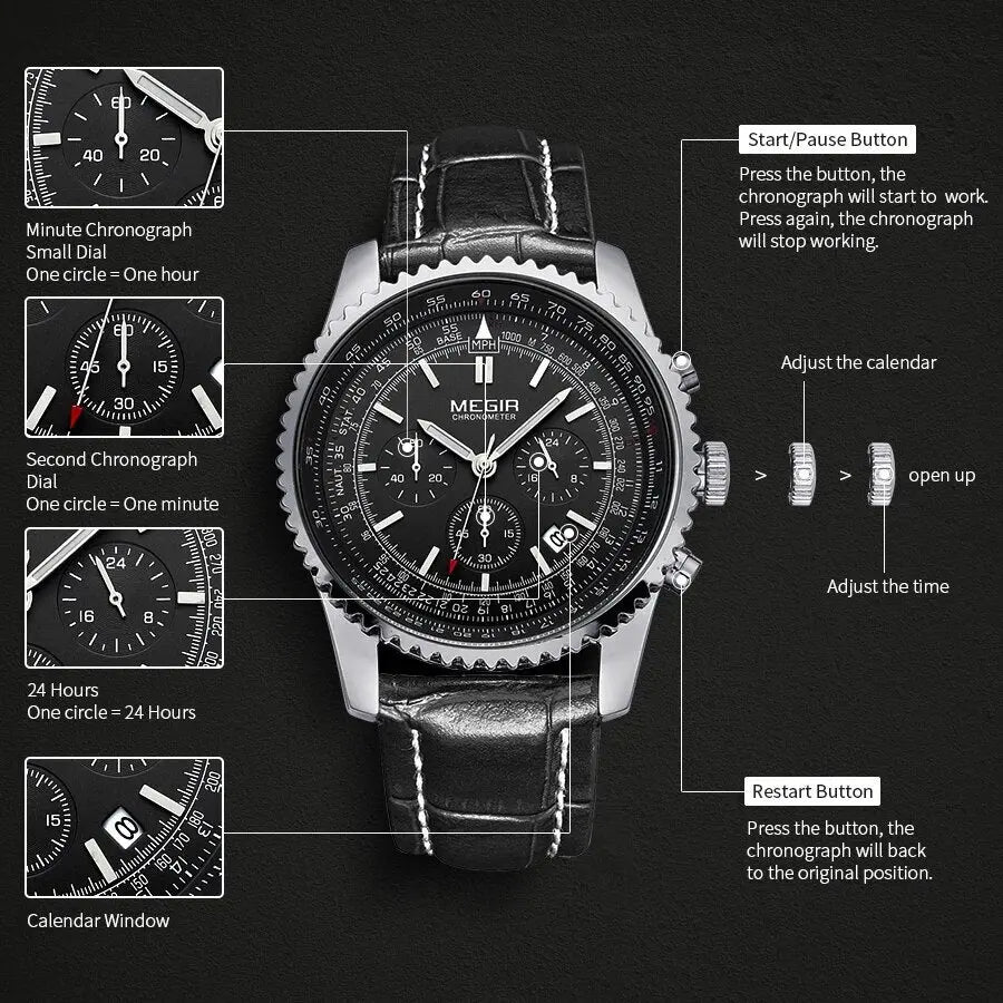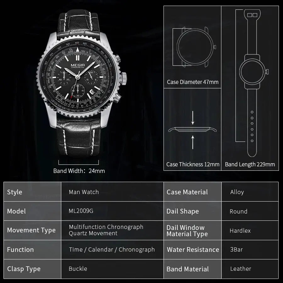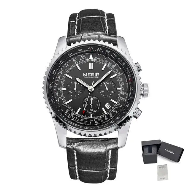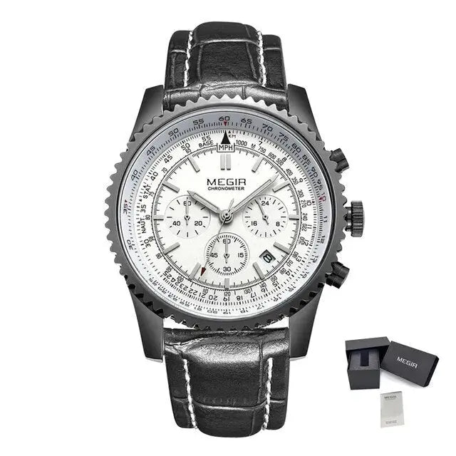 Introducing the MEGIR Fashion Leather Strap Quartz Watch, the perfect blend of style and functionality. This waterproof timepiece is designed for the modern man who values both flair and practicality.