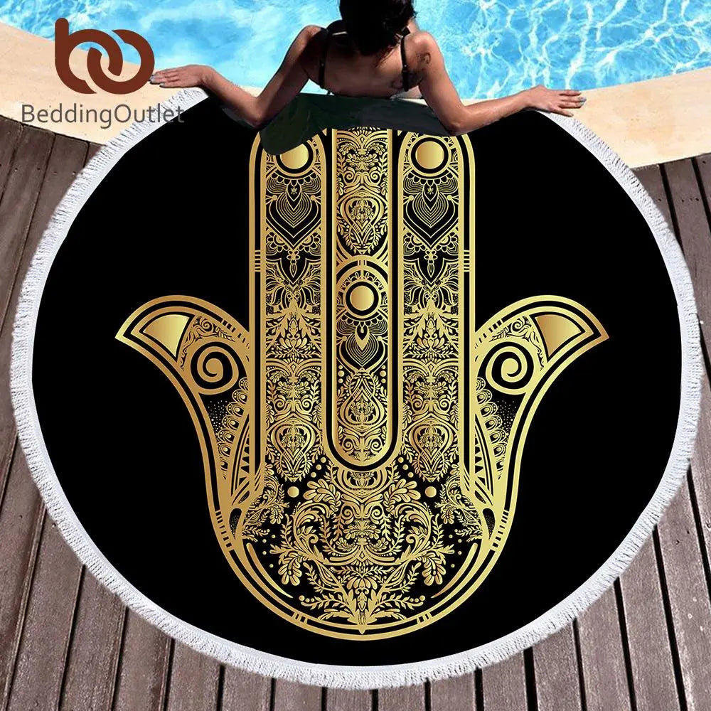 Microfiber Round Beach Towel for Adults Summer Toalla Tassel Yoga Mat Hamsa Hand Printed Serviette De Plage 150cm