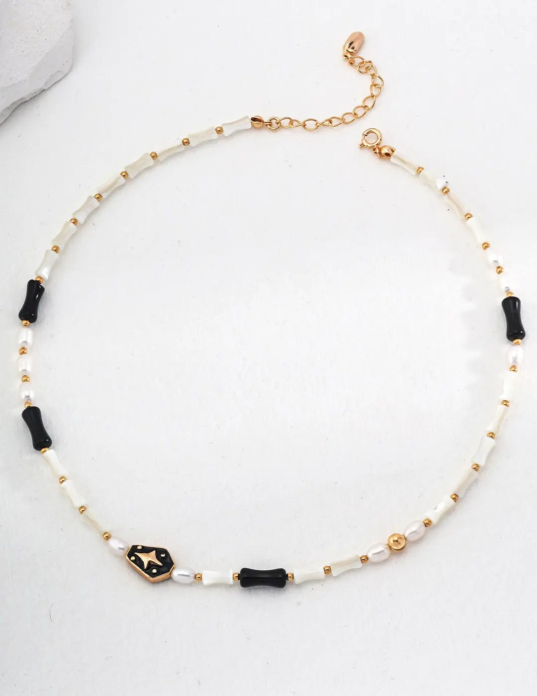 - Size: chain length is about 39cm + 5cm extension chain, shell size about 4*7m, black onyx about 13*mm, pearl size about 4*6mm