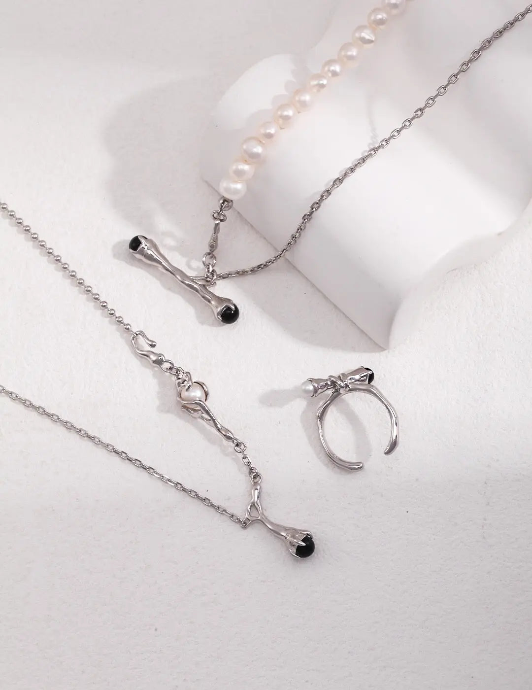 Natural Branch Style Pearl And Black Onyx Necklace-4