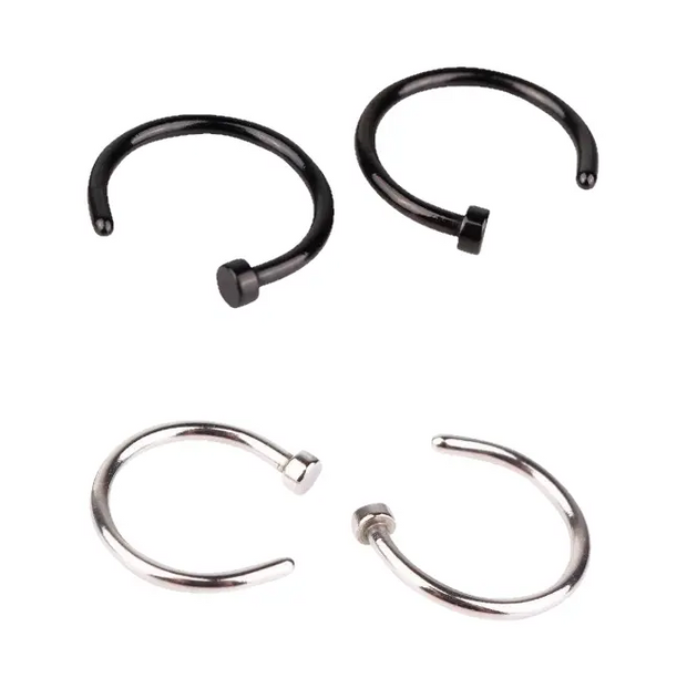 Stainless Steel nose ring available in a black or silver finish.