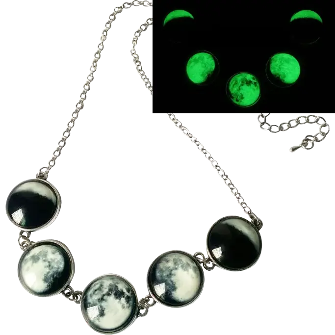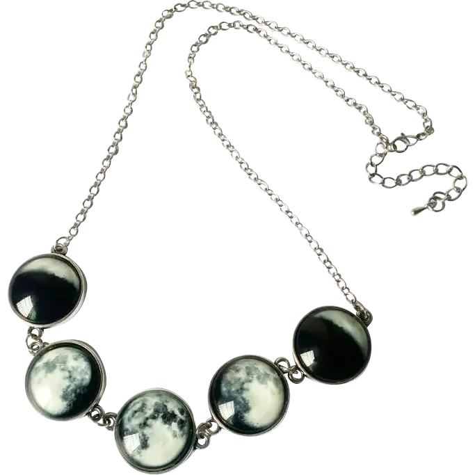 Beautiful necklace showing the phases of the moon on a silver chain.