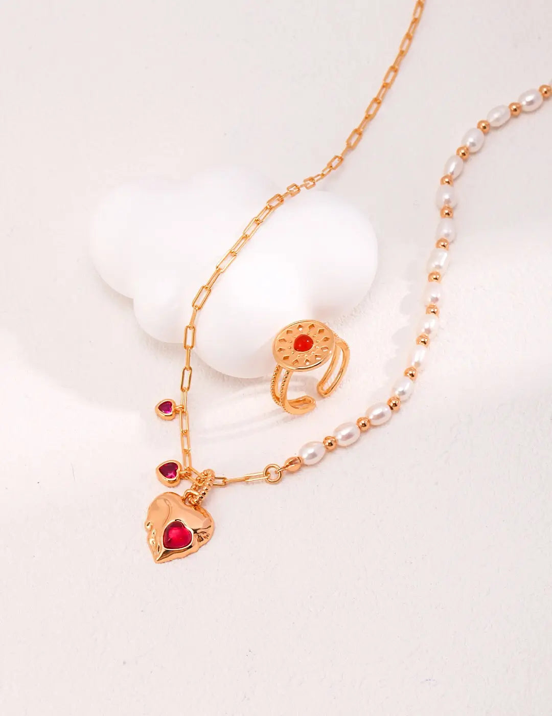 - Pearl size about 4.3*6mm / Red Corundum size about 5mm, 3.5mm