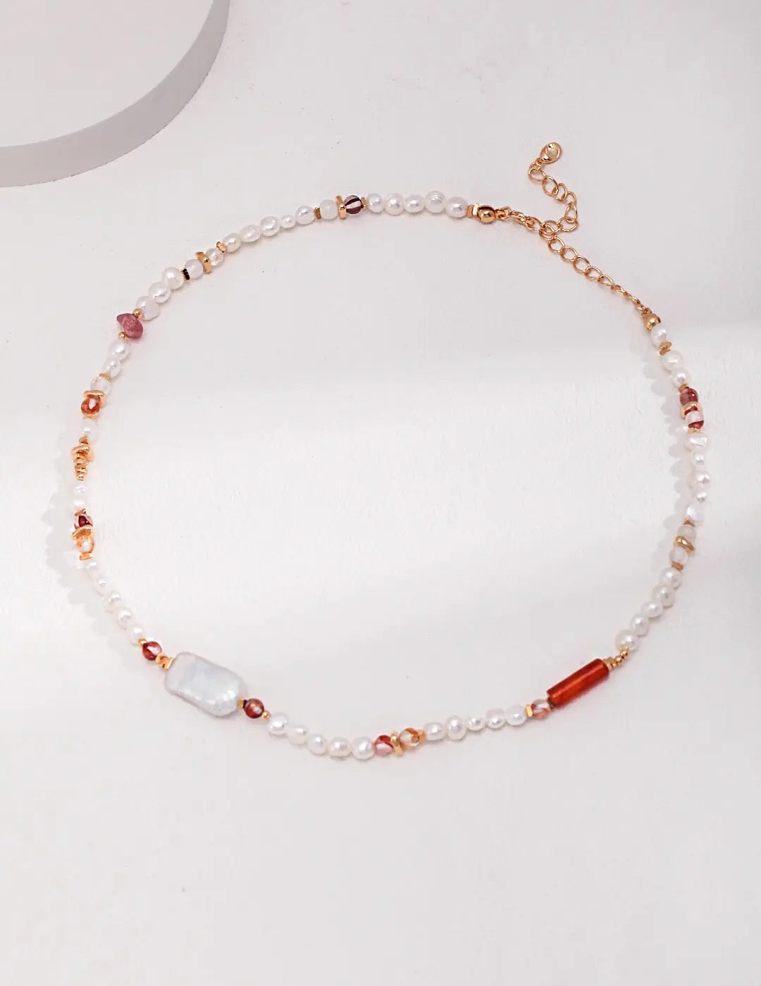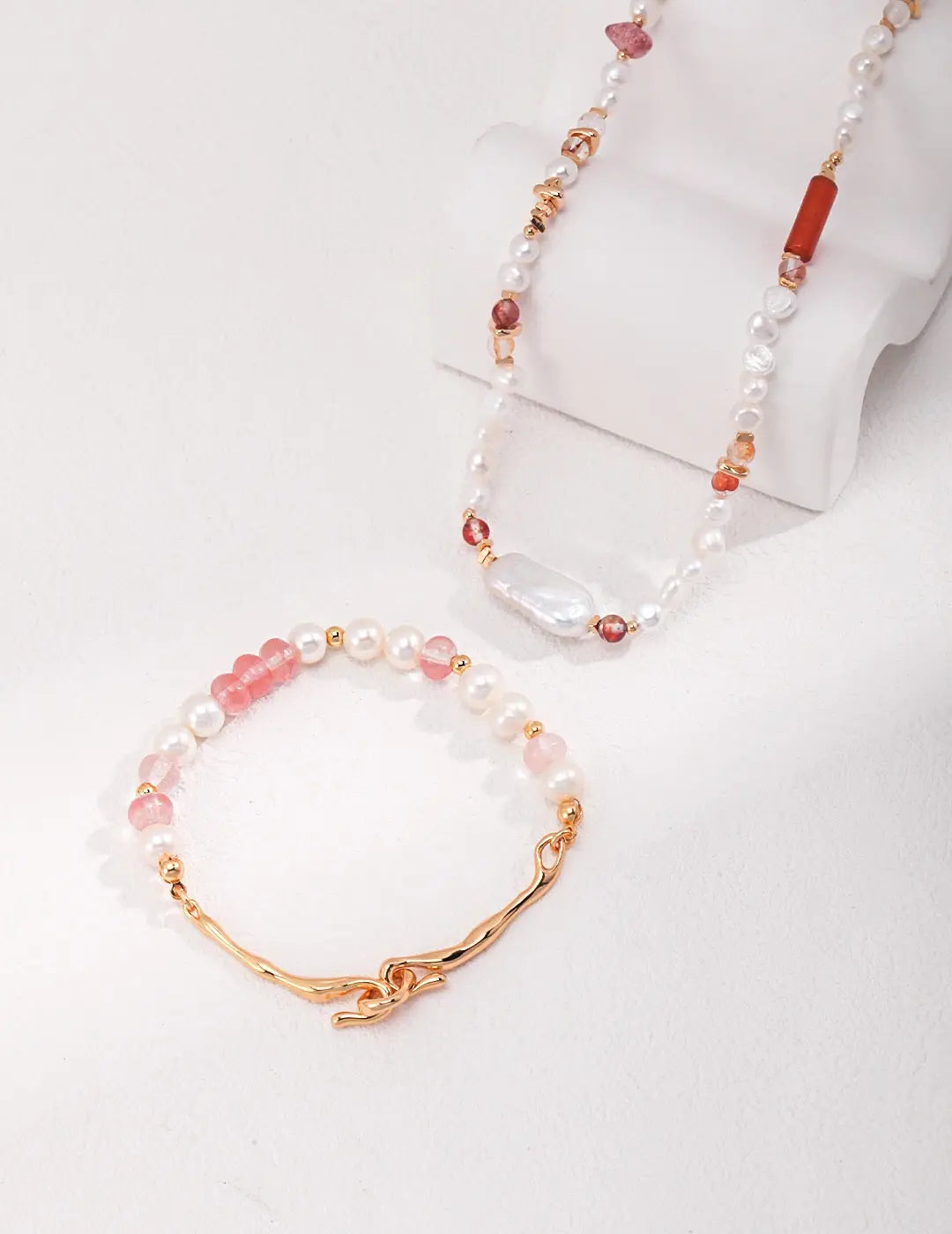 - Materials: Strawberry Quartz / Natural Pearl / Gold Vermeil (18ct gold plated on sterling silver)