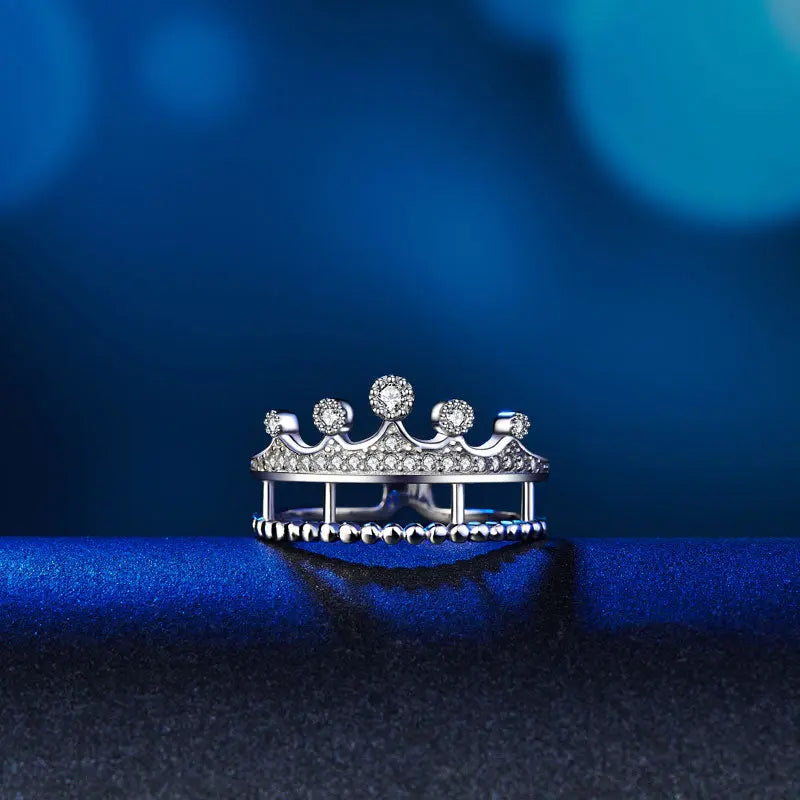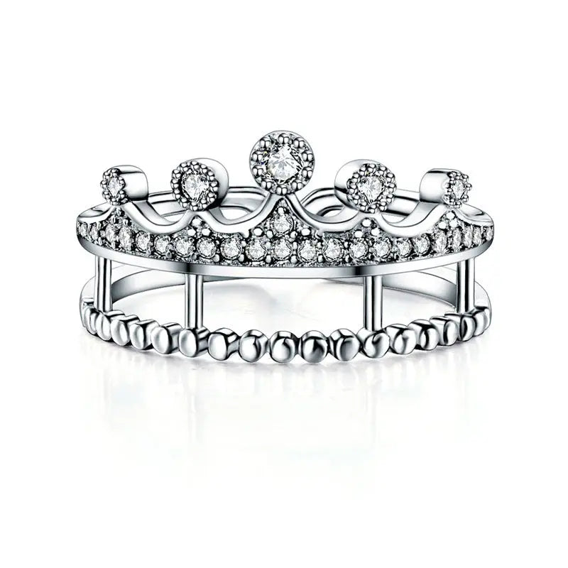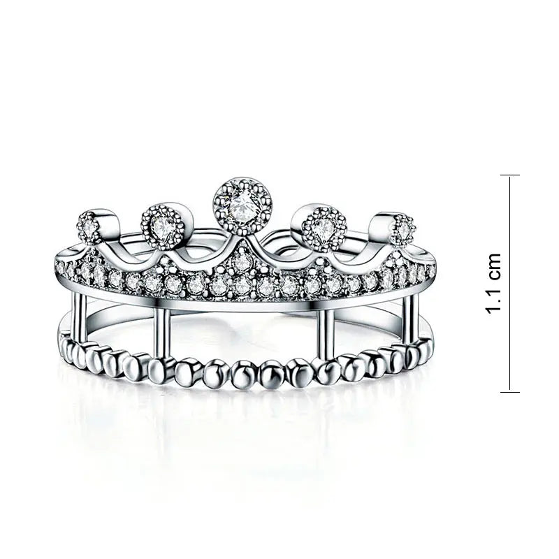 Elevate your style with the Solid 925 Sterling Silver Ring featuring a trendy crown shape adorned with created diamonds. This exquisite piece, available in US sizes 5 to 8, boasts a height of 1.1 cm, crafted from real solid 925 sterling silver, stamped for authenticity. The ring's high polish finish and pave stone setting ensure a dazzling look that captures attention. Experience guaranteed high quality and add a touch of elegance to any outfit.